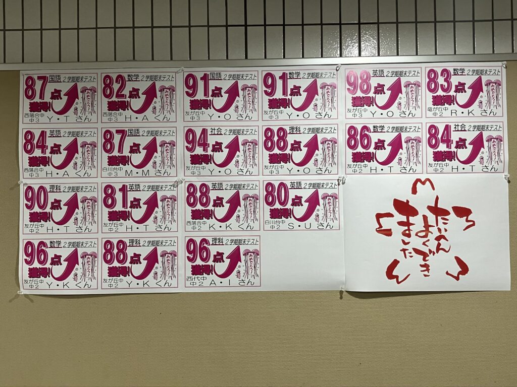 二学期 期末テストの結果で、うれしい成績upの報告を多数いただいています!